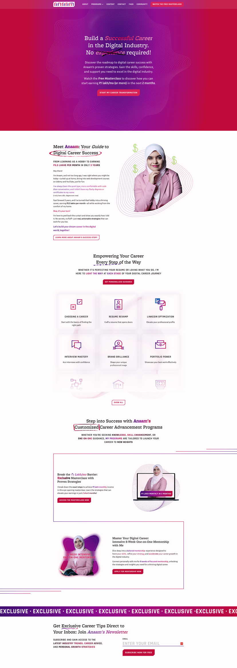 Landing and marketing funnels for a career guidance coach.