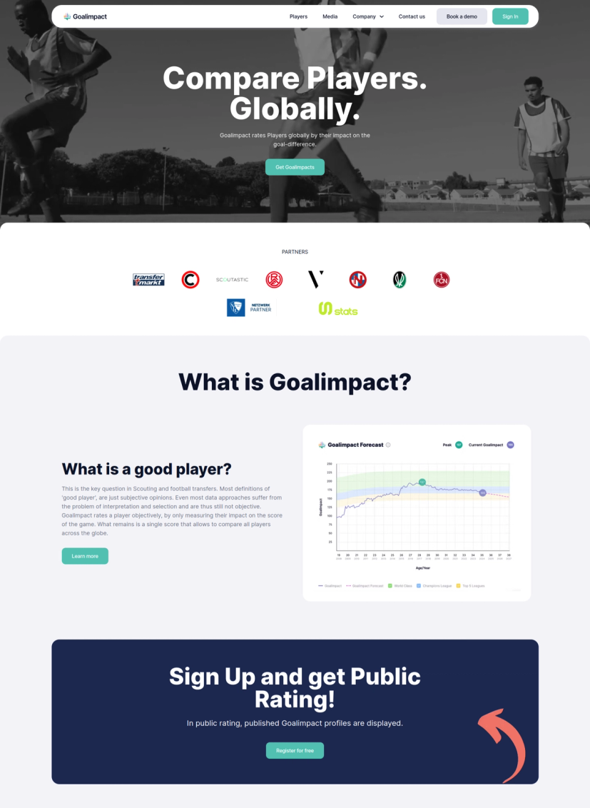 Goalimpact is an objective player rating algorithm that rates football players by their impact on the goal difference.